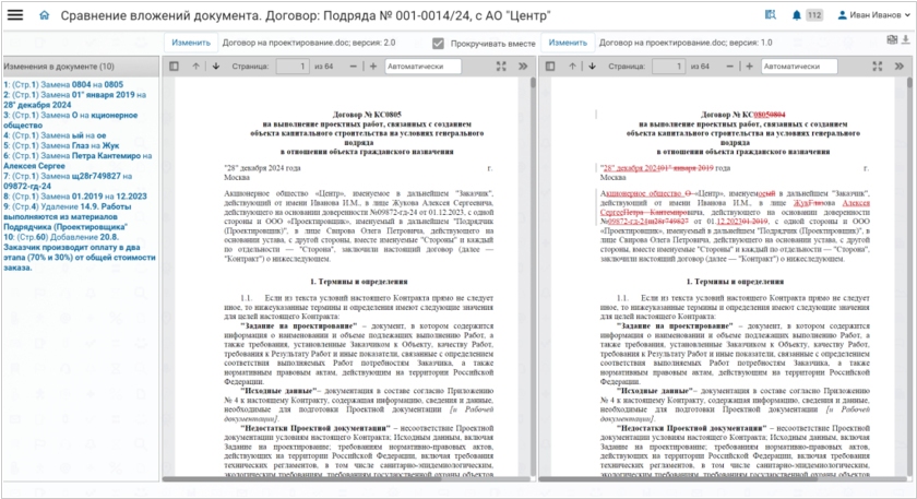 На платформе TESSA представлен новый модуль «Сравнение Документов» — готовое решение для автоматического выявления расхождений в разных версиях файлов. Модуль заменяет трудоемкое ручное сравнение сотен страниц, обеспечивая высокую скорость, точность и надежность процесса сверки договоров, учредительных и других критически важных документов в составе системы электронного документооборота. Современный документооборот требует оперативного контроля над любыми правками. Несогласованные изменения в контракте или уставе могут привести к серьезным финансовым и юридическим рискам. Модуль «TESSA Сравнение Документов» решает эту проблему, автоматически анализируя разные версии файлов и находя все различия в текстовом содержимом, структуре и расположении элементов. Система не пропускает ни одну правку, удаление или добавление, позволяя эффективно контролировать все изменения.