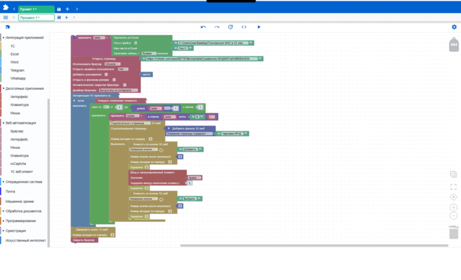RPA платформа для автоматизации бизнес процессов и рутинных задач с помощью программных роботов. Работает в интерфейсах как человек, копирует данные, отправляет письма, заполняет формы, сверяет документы и многое другое